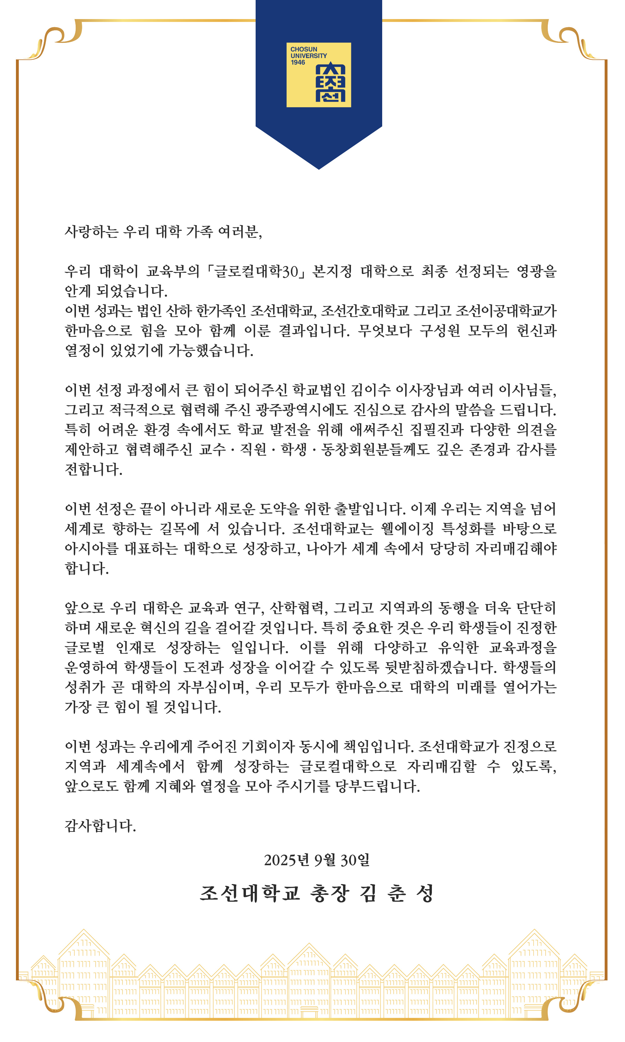 [총장 담화문] 글로컬 대학 선정! 모두의 성과이자 새로운 도약입니다.