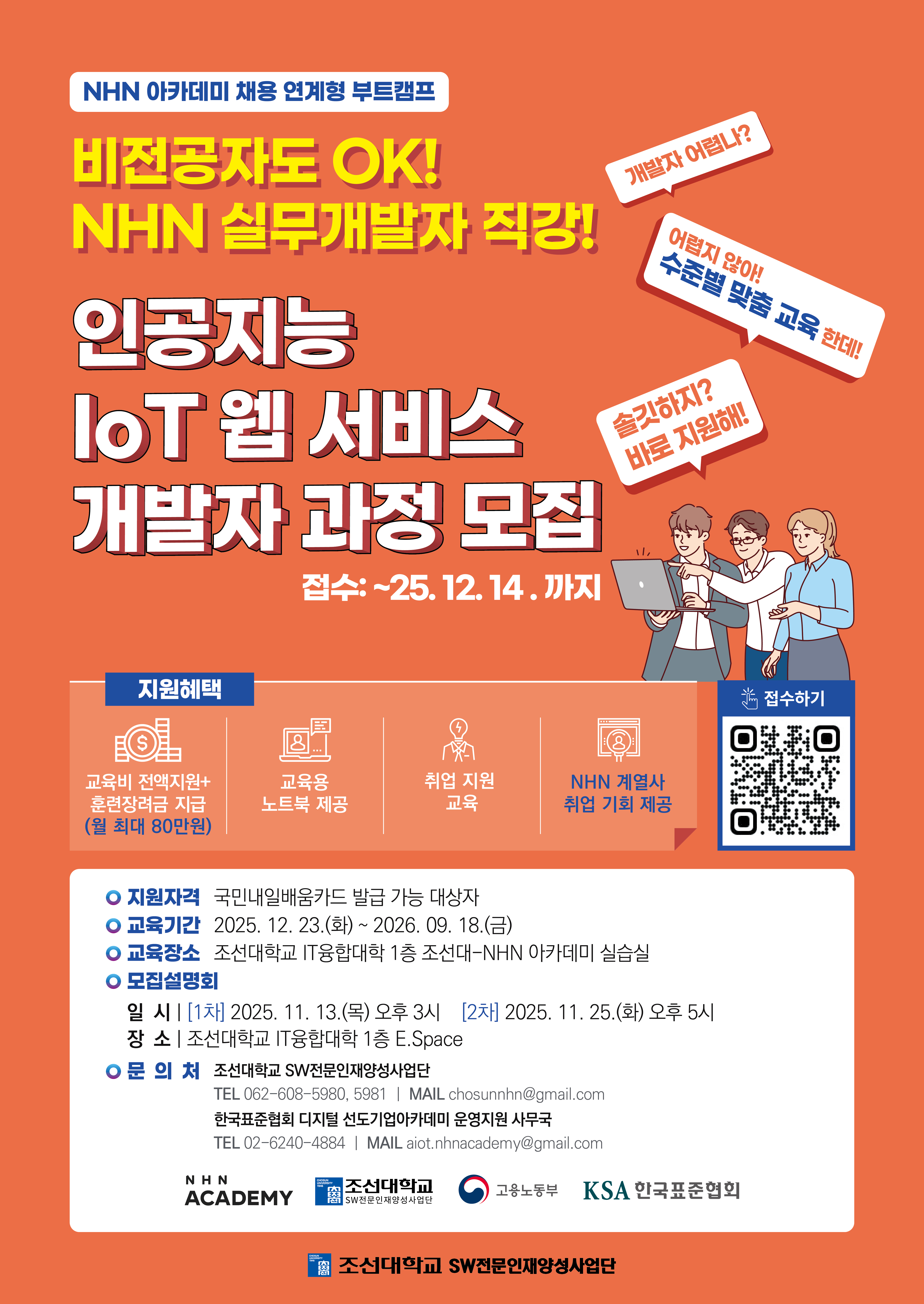 [마감임박!][NHN 아카데미 채용 연계형 부트캠프] 인공지능 IoT 웹 서비스 개발자 과정 모집