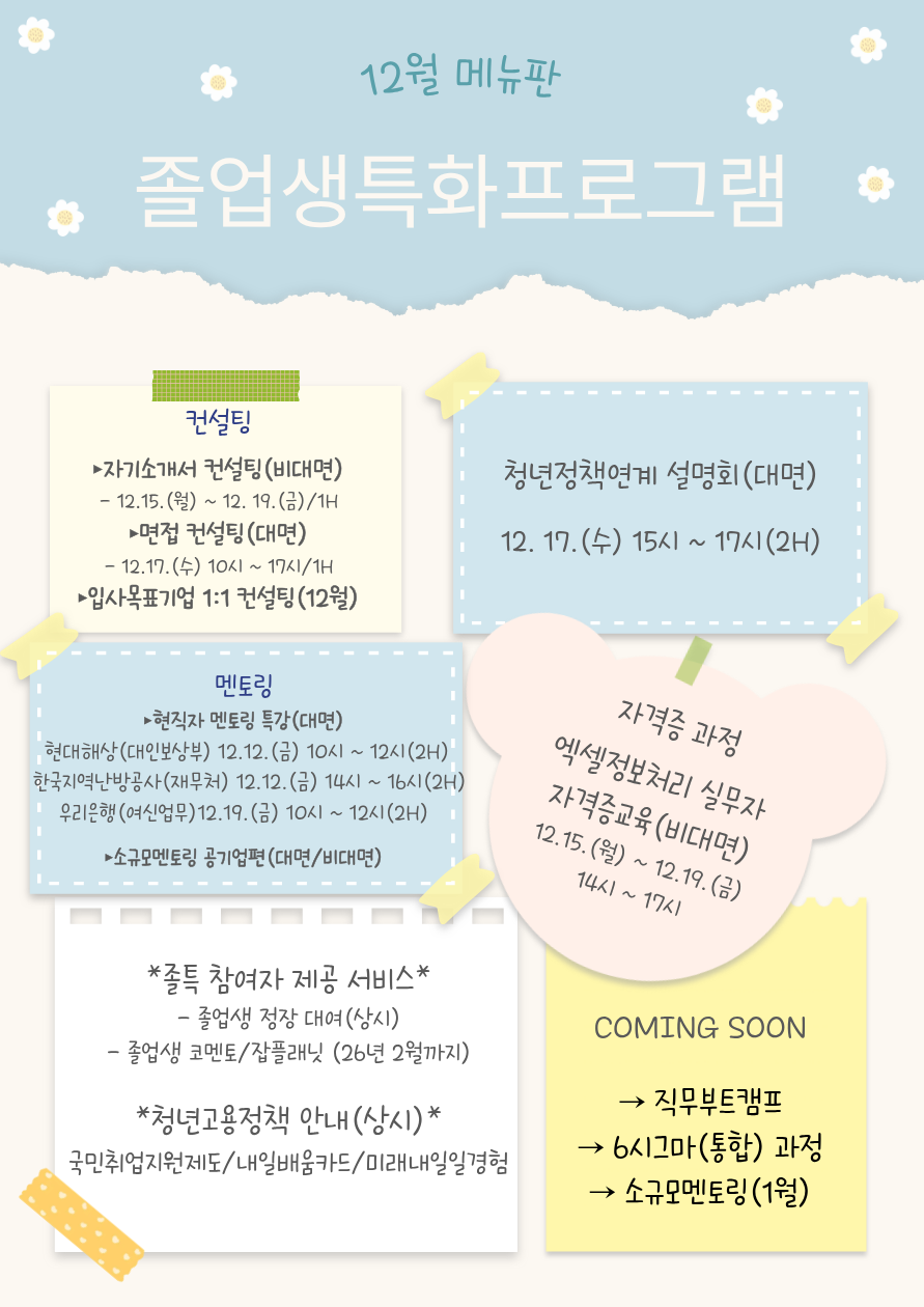 [졸업생특화프로그램] 12월 프로그램 메뉴판