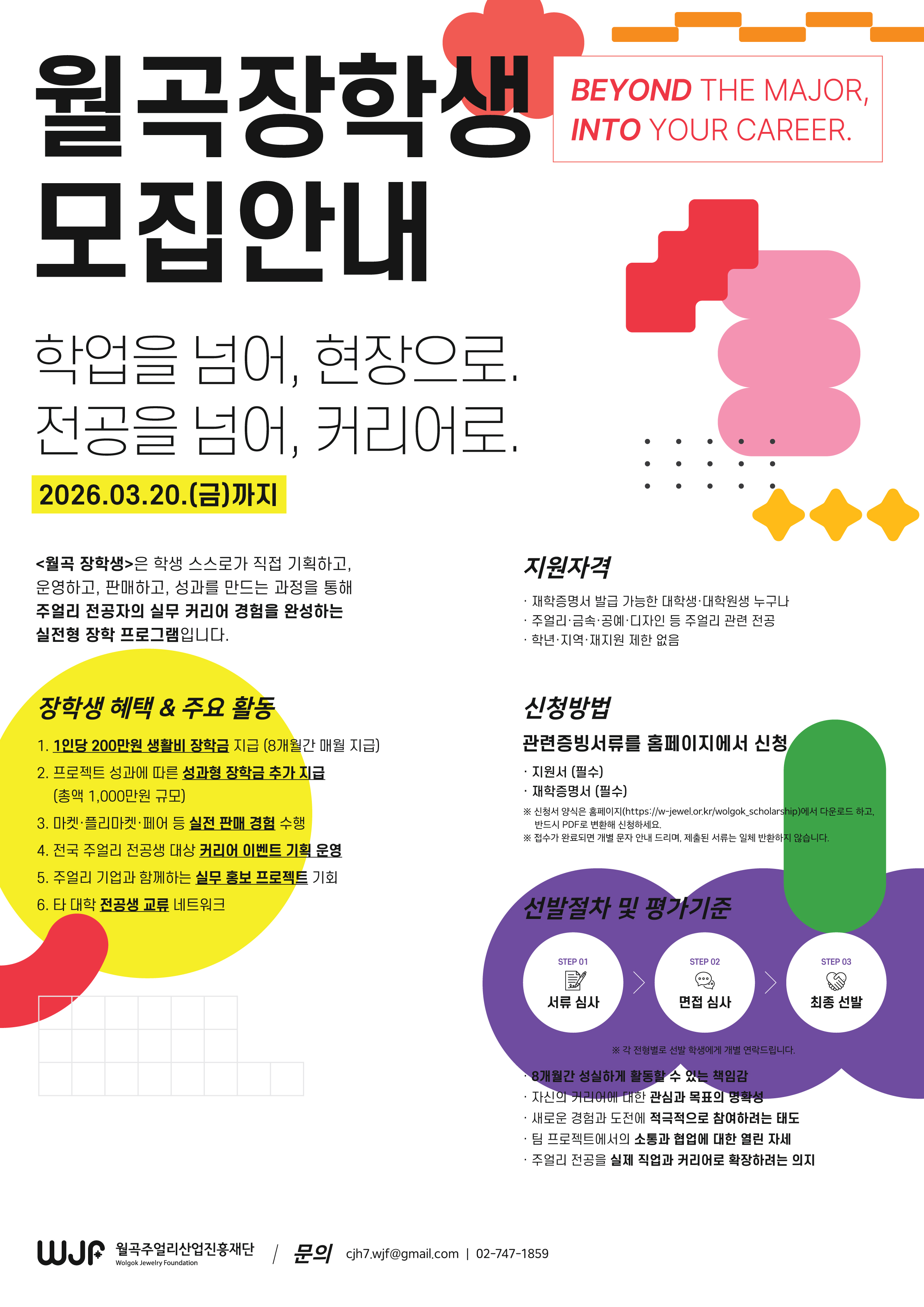 [월곡주얼리산업진흥재단]2026년도 월곡장학생 모집 안내