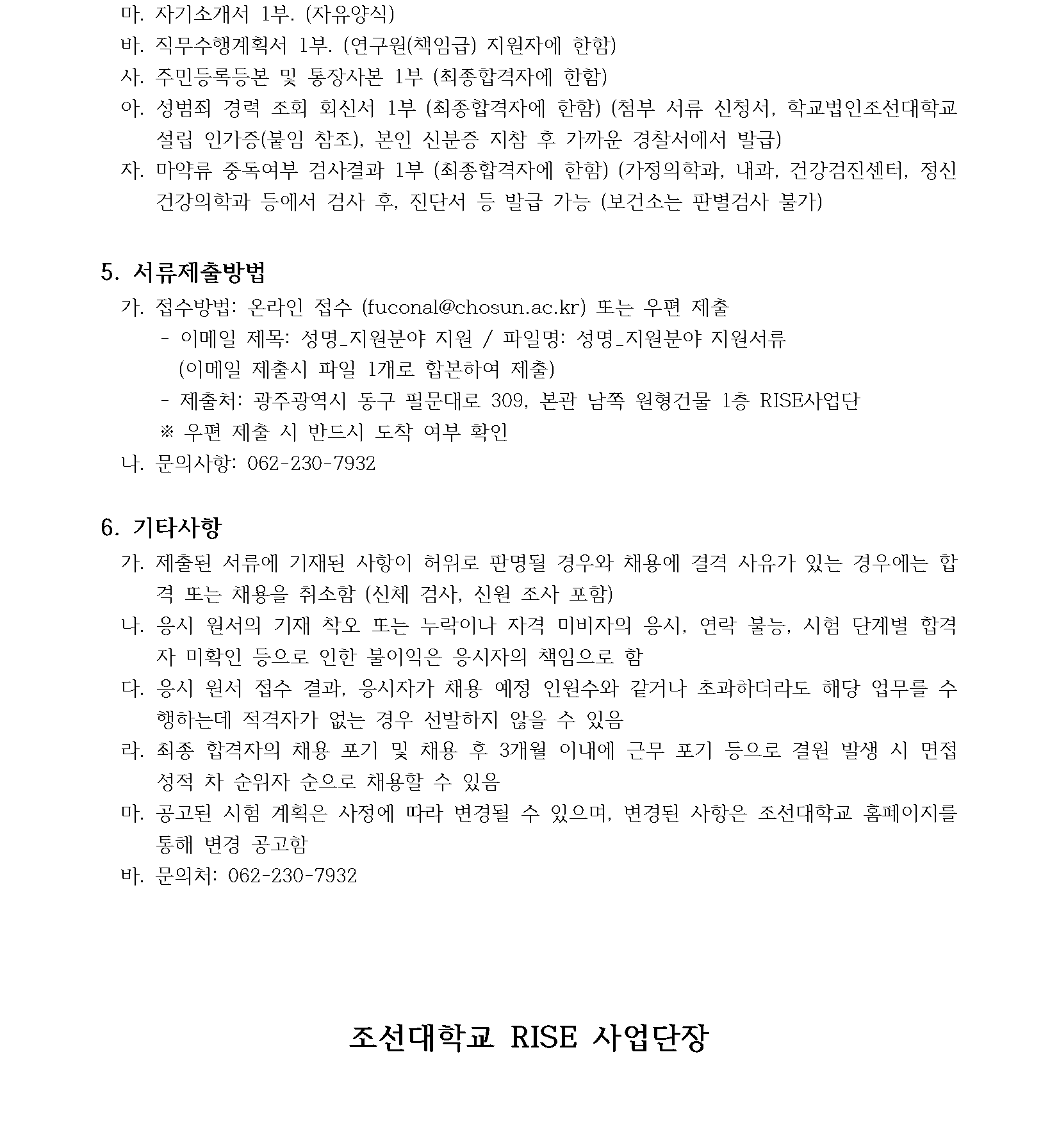 완료 [RISE사업단] 조선대학교 RISE사업단 연구원 채용 공고